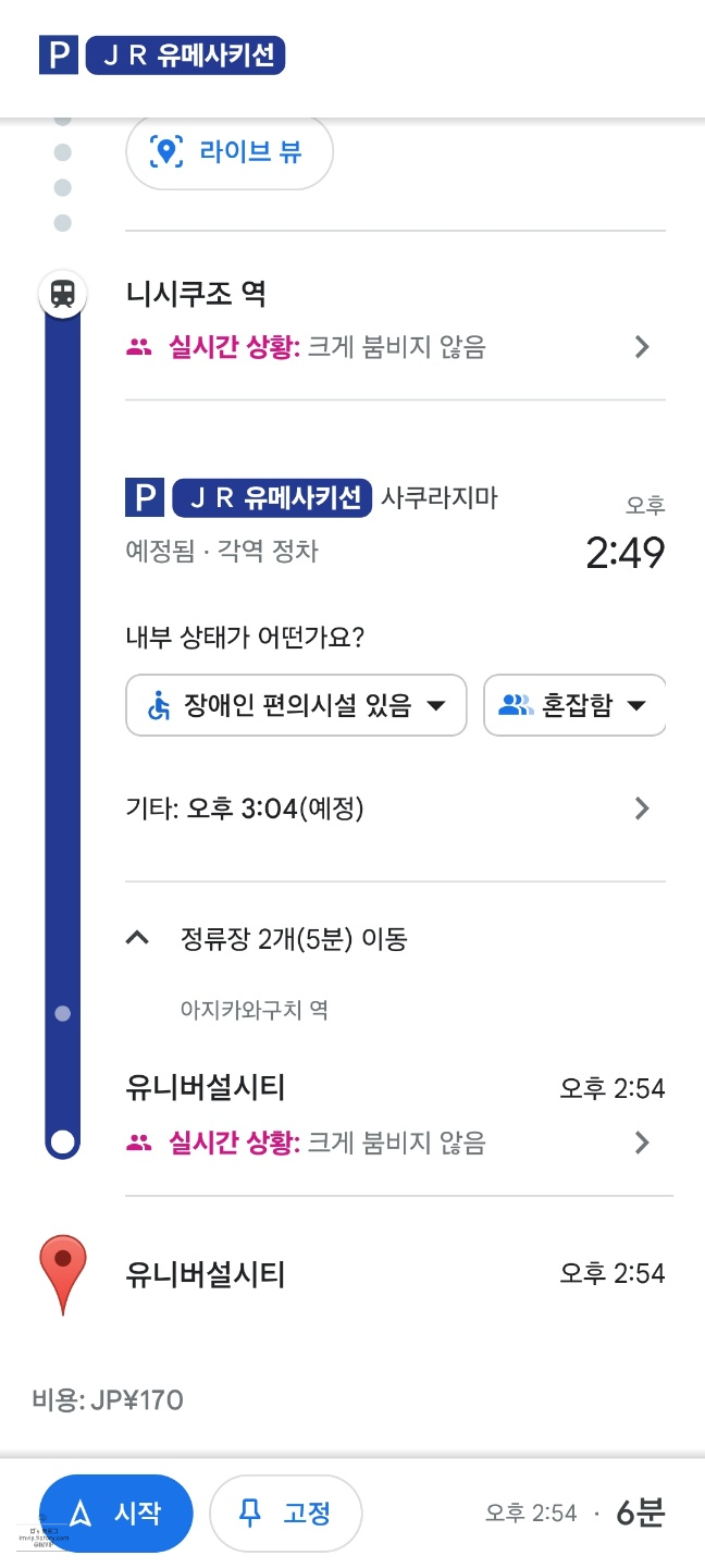 니시쿠조역 > 아지카와구치 역 > 유니버셜 시티역