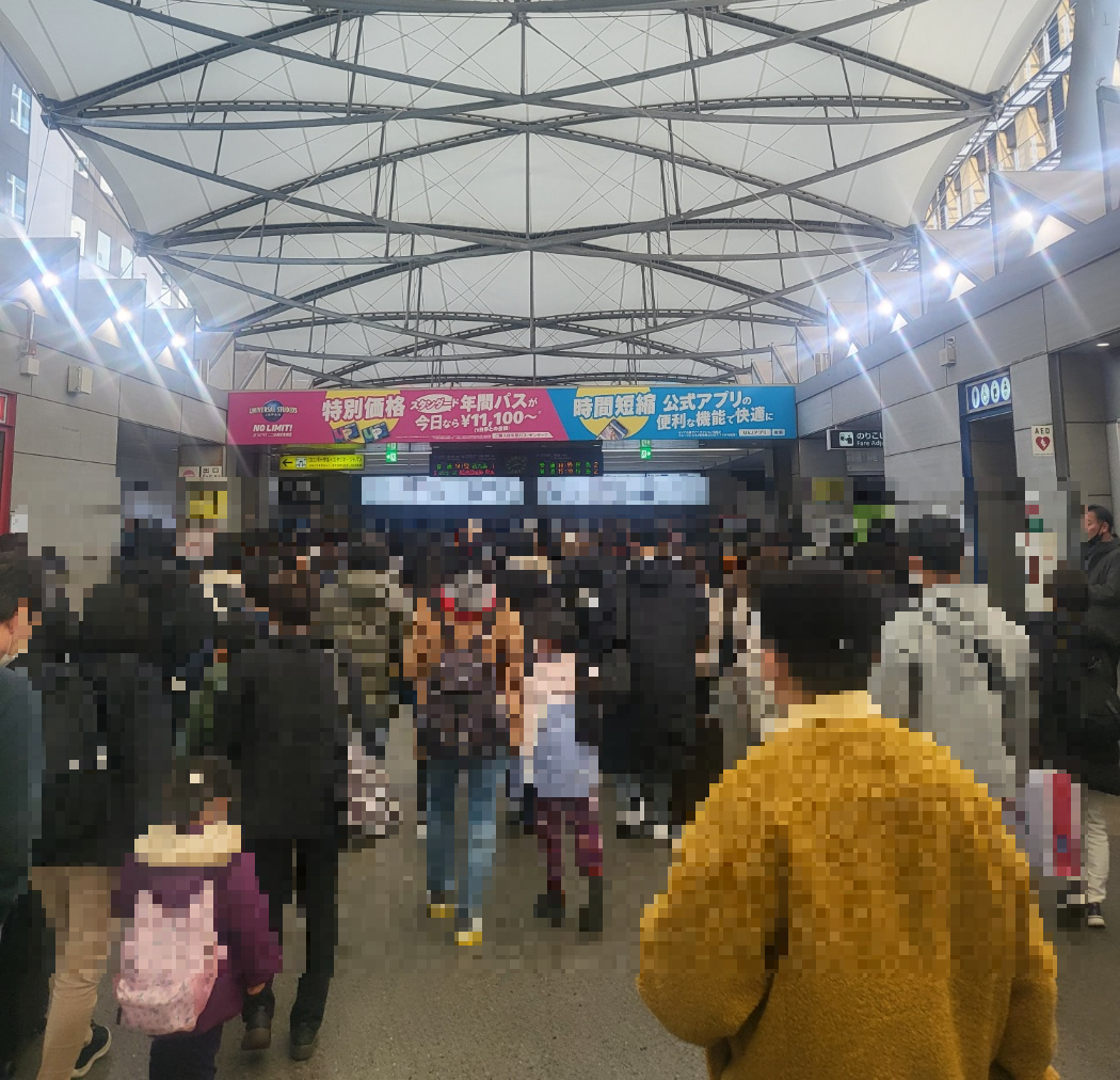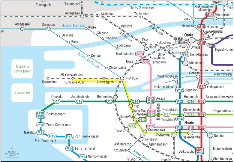 JR유메사키선 니시쿠조역에 하차 후 한신라인으로 갈아타서 난바역에서 내리면 끝.