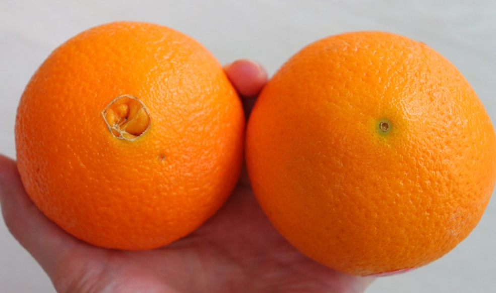 배꼽이 과하게 큰 오렌지는 더 빨리 수분이 빠지고 과육이 푸석할 수 도 있습니다.