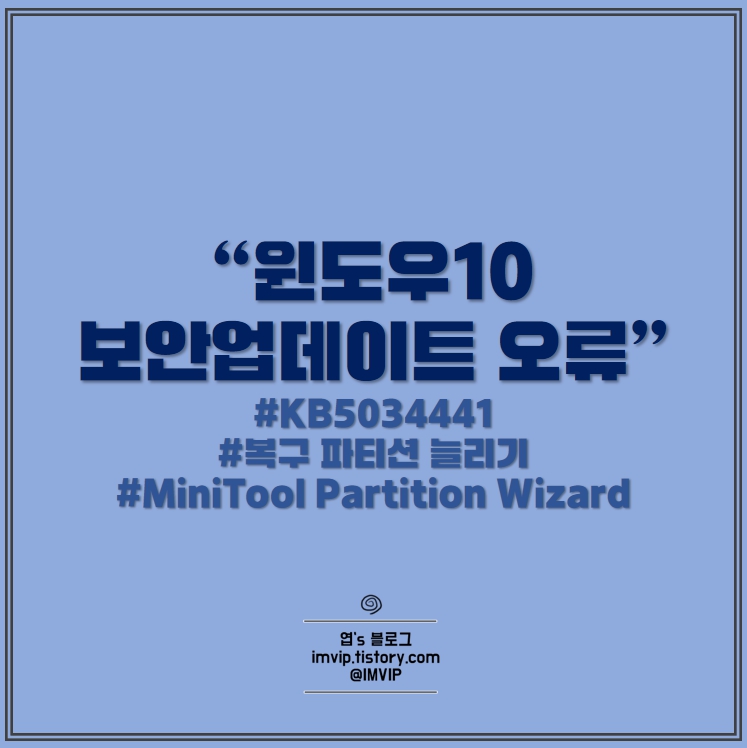윈도우10 버전에서 이 문제는 복구파티션 크기 문제로 업데이트 오류가 발생하는 상황입니다.