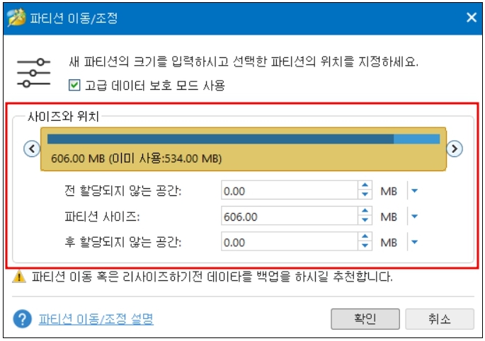 세 번째, 복구 파티션 늘리기