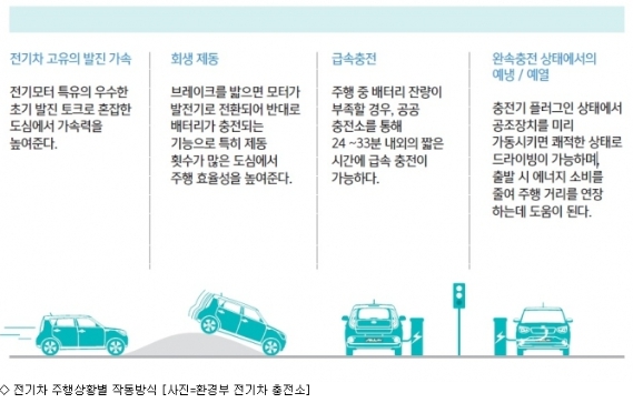 즉, 주행 중 브레이크를 밟거나, 가속 페달에서 발을 떼는 감속을 하면 전기모터가 역회전하는 데, 여기서 나오는 물리적 힘으로 전기를 만들어 재사용할 수 있습니다.