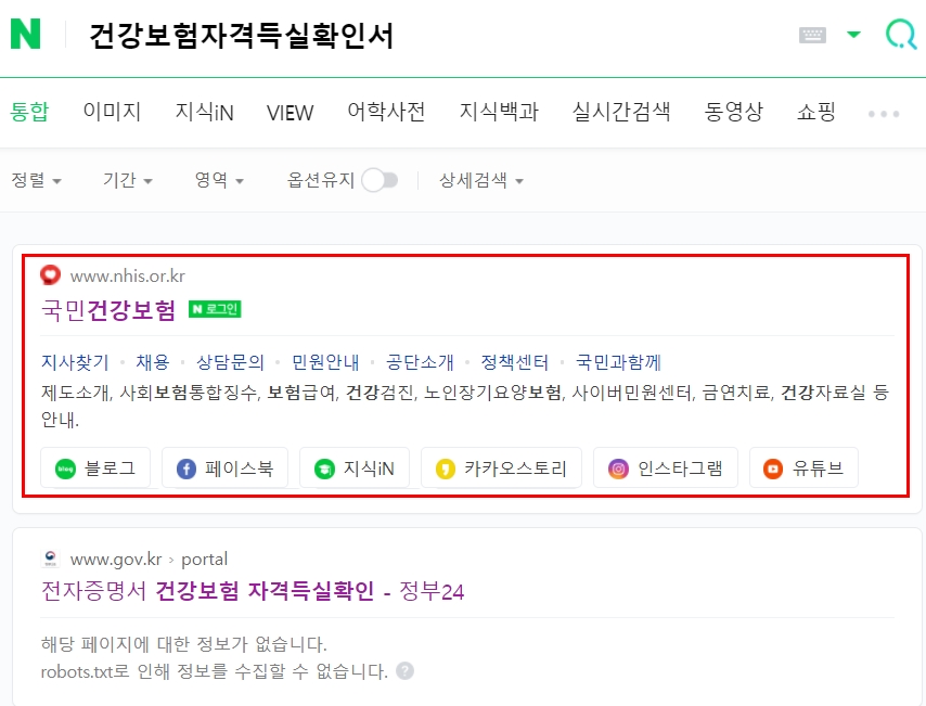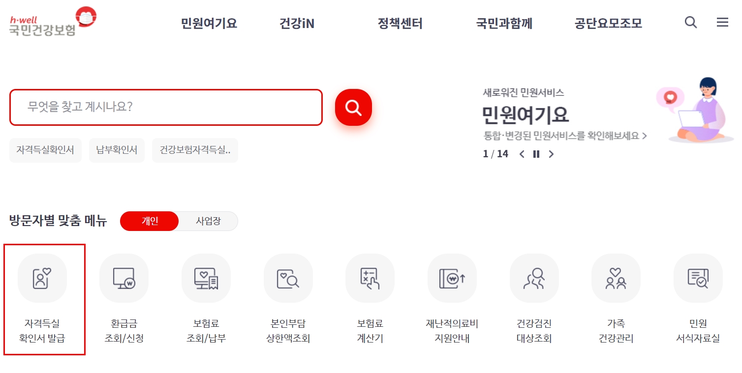 1. 검색엔진에 건강보험자격득실확인서 or 국민건강보험 검색