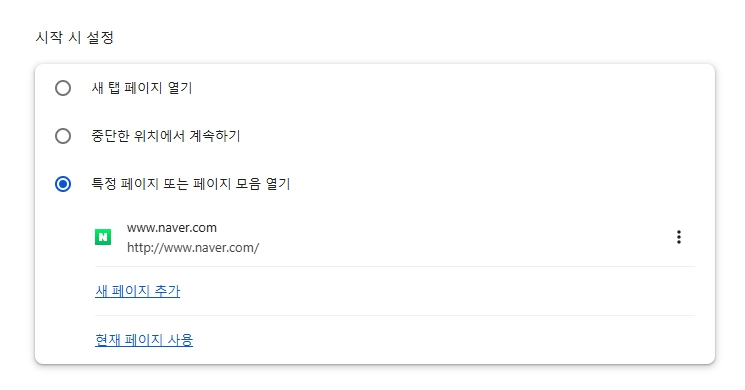 5. 새 페이지 추가를 눌러 여러개를 시작페이지를 설정해도 됩니다.