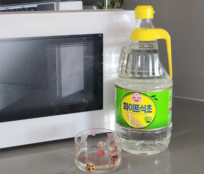 필요한 재료: 식초, 물, 전자레인지용 내열 용기