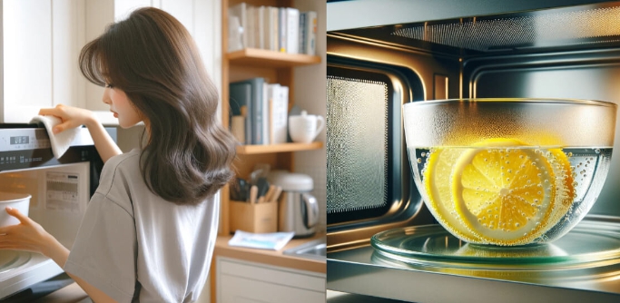 필요한 재료: 레몬 반 개, 물, 전자레인지용 내열 용기