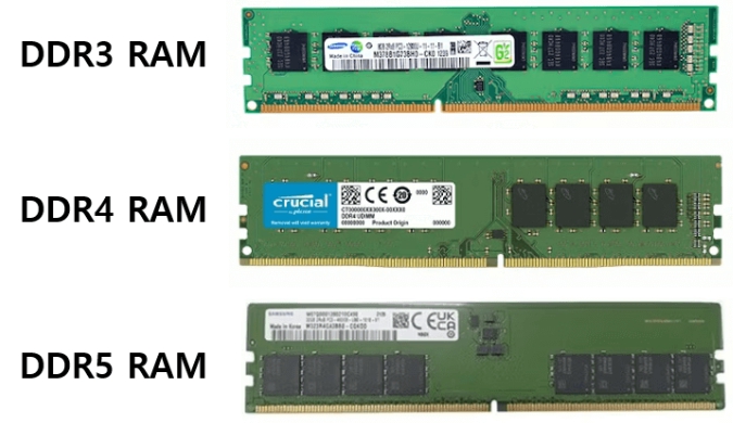 - DDR3, DDR4, DDR5는 물리적인 슬롯이 다르므로 서로 호환되지 않음.