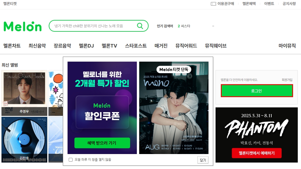 1. 멜론 웹사이트 접속 및 로그인: 먼저 멜론 공식 웹사이트에 접속한 후, 현재 사용 중인 계정으로 로그인합니다.