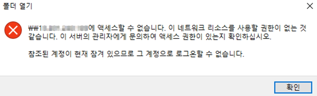 공유폴더로 사용했던 PC를 교체하면서 ip, 계정, 패스워드 정보는 동일하게 했지만. 일부 PC가 위와 같은 에러가 발생하여 접속이 안 되는 현상이 발생하였습니다.