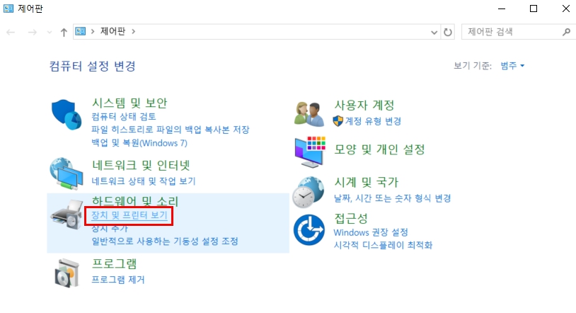 - Bluetooth 및 장치 → 프린터 및 스캐너