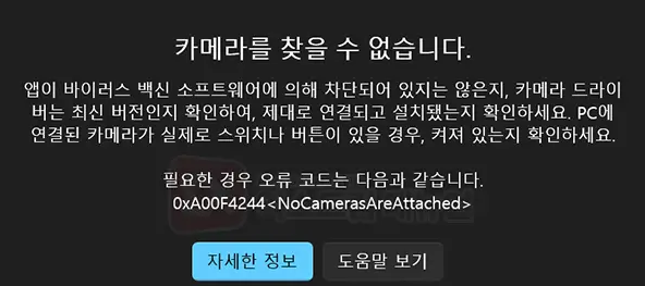 카메라 드라이버가 손상되었거나 삭제된 경우, 윈도우가 카메라 장치를 인식하지 못해 “NoCamerasAreAttached” 오류가 뜹니다.