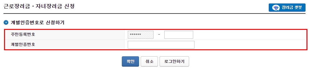 3.주민등록번호와 개별인증번호 입력 후 확인
