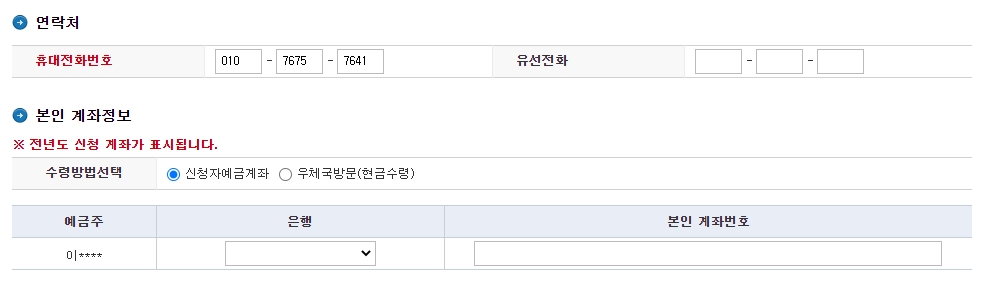 5.전년도에 신청이력이 있으면 전년도 신청 계좌가 표시됩니다.