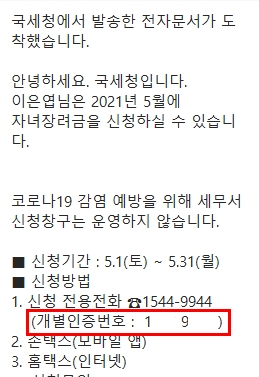 4.자녀장려금 금액 확인
