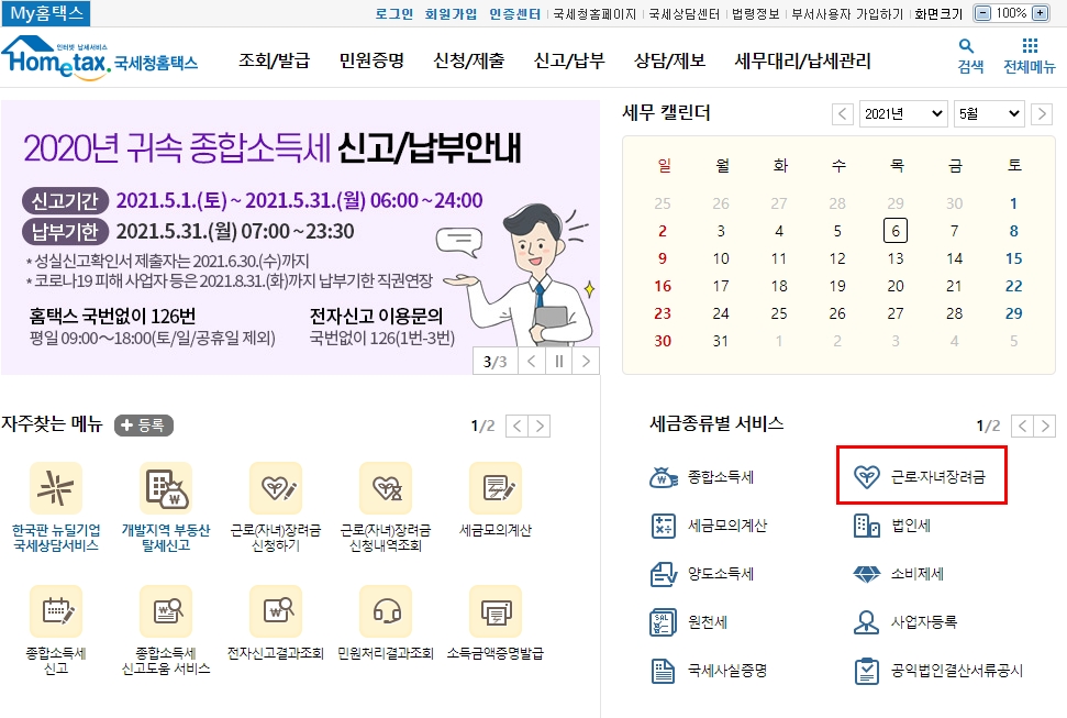 1.홈텍스 접속 후 근로.자녀장려금 서비스 선택